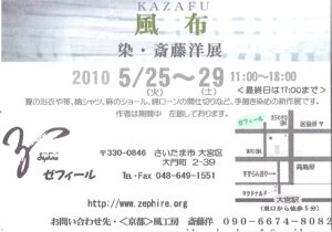 斜夢 カウントダウン 6nozaki 2011-02-05 0 コメント 風工房の活動2010 上と右にカウントダウンをつけた。 レポーター(野崎)の知っている範囲で、昨年の風工房の活動を並べてみた。 後半は、この他に、 SantaFe & NY でも展示。