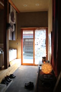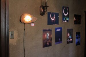 パネルとお魚灯のあいだにある電灯(消してある)は、土壁に付属したもの。